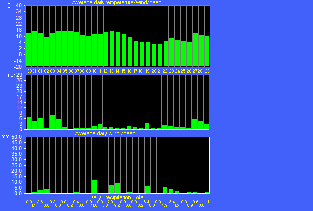 Maximum gust speed = 34.5 mph from 248°(WSW) on day 07 at time 19:56